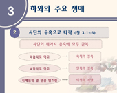 내용구성: 1. 하와의 인적 사항 2. 시대적 배경 3. 하와의 주요 생애 4. 하와의 성품 5. 공적 및 실수 6. 배울 수 있는 교훈 이 자료는 사용자의 편의에 맞게 수정과 편집이 가능하므로 내용 및 순서편집을 직접 하실 수 있습니다. 전 내용은 수정이 가능하므로 교회의 실정에 맞게 변경하여 사용하실 수 있습니다.