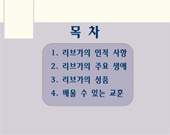 내용구성: 1. 리브가의 인적 사항 2. 리브가의 주요 생애 3. 리브가의 성품 4. 배울 수 있는 교훈 이 자료는 사용자의 편의에 맞게 수정과 편집이 가능하므로 내용 및 순서편집을 직접 하실 수 있습니다. 전 내용은 수정이 가능하므로 교회의 실정에 맞게 변경하여 사용하실 수 있습니다.