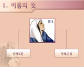 <한나>에 관한 성경공부 파워포인트 자료입니다. 분량: Presentation slide- page11 내용구성: 1. 이름의 뜻 2. 인적 사항 3. 시대적 배경 4. 주요 활동 5. 성품 6. 평가 및 교훈 이 자료는 사용자의 편의에 맞게 수정과 편집이 가능하므로 내용 및 순서편집을 직접 하실 수 있습니다. 전 내용은 100% 수정이 가능하므로 교회의 실정에 맞게 변경하여 사용하실 수 있습니다.