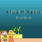 예수님께서 제자들과 함께 음식을 드실 때에 "너희 중 하나가 나를 팔리라"라고 하셨어요.(요13:21-30) 그러자, 제자들은 서로 얼굴을 쳐다보았으나 누구인지 전혀 알 수가 없었어요. 제자들은 근심하며 "주님, 제가 그 사람이 아니지요?"라고 반문했어요. 베드로는 예수님 옆에 가까이 있는 요한에게 예수님께 누구인지 물어보라고 했어요. 그러자, 요한은 "주님, 그가 누구입니까?" 주님은 "나와 한 조각을 찍어다가 주는 자가 나를 배반할 것이다." 라고 하시며 한 조각의 빵을 찍어 가룟 유다에게 주셨어요. 이 자료는 사용자의 편의에 맞게 수정과 편집이 가능하므로 내용 및 순서편집을 직접 하실 수 있습니다. 전 내용은 100% 수정이 가능하므로 교회의 실정에 맞게 변경하여 사용하실 수 있습니다.
