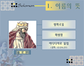 <지혜 왕 솔로몬>에 관한 성경공부 파워포인트 자료입니다. 내용구성: 1. 이름의 뜻 2. 인적 사항 3. 시대 배경 4. 주요 활동 5. 성품 6. 실수 7. 평가 및 교훈 이 자료는 사용자의 편의에 맞게 수정과 편집이 가능하므로 내용 및 순서편집을 직접 하실 수 있습니다. 전 내용은 100% 수정이 가능하므로 교회의 실정에 맞게 변경하여 사용하실 수 있습니다.
