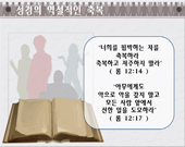 사람들은 누구나 각기 다른 행동 양식을 가지고 살아갑니다. 세상에 수많은 사람들이 살고 있지만 생각과 행동이 같은 사람은 없습니다. 이렇게 다양한 사람들이 뒤섞여 사는 이 세상속에 함께 조화롭게 어울려 평화하라고 오늘 본문은 말하고 있습니다. 평화, 화평이란 하나님께서 내리시는 복이고 은사입니다. 하나님으로 부터 주어지는 절대적 능력 안에서 화평을 구하고 평화를 만들고, 그 능력 안에서 더불어 평화하는 삶을 살아야 할 것입니다. 화평의 문제는 힘도 소유도 번영의 문제도 아닌 사랑의 문제입니다. 회개와 겸손과 믿음의 문제입니다. 이 자료는 사용자의 편의에 맞게 수정과 편집이 가능하므로 내용 및 순서편집을 직접 하실 수 있습니다. 전 내용은 100% 수정이 가능하므로 교회의 실정에 맞게 변경하여 사용하실 수 있습니다.
