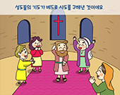 예루살렘 교회는 베드로 사도를 위하여 다같이 모여서 기도를 하였어요.