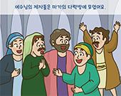 예수님의 승천한 모습을 지켜본 제자들은 다시 예루살렘으로 와 마가의 다락방에 모였어요.