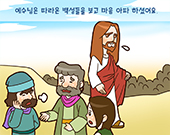 하루 종일 예수님의 말씀을 들은 사람들은 슬슬 배가 고파오기 시작했어요. 제자들이 예수님께 말했어요.