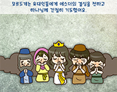 “에스더, 왕에게 나아가서 우리 유다민족을 살려달라고 청하거라.” 에스더는 무서웠어요.