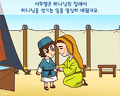 그래서 어머니 한나는 사무엘이 엄마의 젖을 떼자 아이를 데리고 엘리 제사장에게 데리고 와서 사무엘을 맡겼어요.