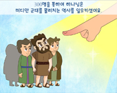 그런데 하나님은 기드온과 생각이 달랐어요. 하나님은 그들이 숫자만 많은 오합지졸이라고 여겼어요.
