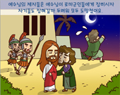 예수님의 제자들은 예수님이 로마군인들에게 잡히시자 자기들도 잡혀갈까 두려워 모두 도망쳤어요.