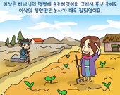 이삭은 하나님의 명령에 순종하였어요. 그래서 흉년 중에도 이삭의 집안만은 농사가 매우 잘되었어요.
