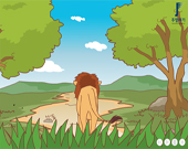 사자는 두 청년을 바라봅니다. 그리고 그들을 발견하고는 어슬렁거리던 크리스티앙이