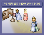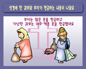 성경 속의 가난한 과부와 부자가 헌금을 드리는 모습을 보여줌으로써 사람을 바라볼 때 그 사람의 외모가