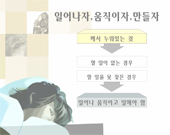 이제는 일어나자. 움직이자. 만들자. 이것은 내가 오늘 말하고자 하는 중요한 두 번 째 부분이다. 깨서 자리에 누어있는 사람은 할 일이 없거나 할 일을 아직 찾지 못했거나 누군가가 도와줄 것을 기다리는 경우일 것이다. 그 외의 경우라 하더라도 깨서 누어 있는 것은 그렇게 바람직하지 못하다. 깨어 있으면 일어나 움직이고 무엇을 해야 한다. 이것이 살아있는 사람의 증거이다. 움직이고 만드는 자는 이론에 매몰되거나 이론의 논쟁에 결코 휩쓸리지 않는다. 왜냐하면 그러한 시간이 없기