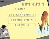 분류 : 파워포인트 설교 대상 : 청,장년부 용서는 하나의 행동이다. 그리고 용서는 이미 앞에 있던 관계의 일에 대해 부정적인 측면 또는 소극적인 측면을 전제로 하고 그것을 극복하는 행동이다. 또 용서는 그 목적이 분명하다. 즉 용서는 온전함(wholeness)과 구원(salvation)을 찾는 행위이다. 만일 용서가 위장된 행위이거나 정치적인 목적으로서 상대방을 어려운 궁지에 몰거나 나의 입장을 유리하게 만드는 것이라면 그것은 오늘의 목적에서 벗어난 것으로서 더 이상 우리에게 거론하고 다룰 대상이 아니다. 이 자료는 사용자의 편의에 맞게 수정과 편집이 가능하므로 내용 및 순서편집을 직접 하실 수 있습니다. 전 내용은 100% 수정이 가능하므로 교회의 실정에 맞게 변경하여 사용하실 수 있습니다.