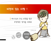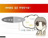 꿈을 이루기 위해서 우선 나는 할 수 없다는 부정적인 생각을 버리고 하나님이 주신 비전을 믿어요. 둘째, 현실에 만족하지 않으며, 셋째, 끝까지 노력하는 거예요. 그러면 내 미래는 밝을 것이고 꿈은 이루어질 거예요. 이 자료는 사용자의 편의에 맞게 수정과 편집이 가능하므로 내용 및 순서편집을 직접 하실 수 있습니다. 전 내용은 100% 수정이 가능하므로 교회의 실정에 맞게 변경하여 사용하실 수 있습니다.