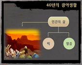 이스라엘 백성들에게 하나님이 40년의 광야생활을 허락하신 이유가 무엇입니까? 사람이 떡으로만 사는 것이 아니라 하나님이 주신 말씀으로 사는 것이고, 매일 매일 하나님께서 우리의 삶을 책임져 주신다는 것을 알려 주시고, 고백하게 하시는데 40년이 걸렸습니다. 보이는 통장만 믿지 말고, 보이는 권력만 의지하지 말고 내일의 주님, 미래의 주님을 확실히 믿어야 합니다. 미래를 주관하시는 시간의 주인이신 주님을 믿음으로써 우리는 나의 염려와 불안에서 벗어나게 됩니다. 이 자료는 사용자의 편의에 맞게 수정과 편집이 가능하므로 내용 및 순서편집을 직접 하실 수 있습니다. 전 내용은 100% 수정이 가능하므로 교회의 실정에 맞게 변경하여 사용하실 수 있습니다.