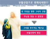 우리는 부활주일을 맞이하여 그 기쁨과 즐거움에 참여하는 예배를 드리고 있습니다. 이 사실은 우리의 신앙도 더 이상 무덤 속의 신앙이 아니라 희망적이고, 소망적인 부활 신앙이 되어야한다는 말입니다. 왜 그렇습니까? 예수님과 함께 십자가에 못 박혀 죽은 자아가 그리스도와 함께 부활하여 새 생명으로 사는 자들이 우리들이기 때문입니다. 이 자료는 사용자의 편의에 맞게 수정과 편집이 가능하므로 내용 및 순서편집을 직접 하실 수 있습니다. 전 내용은 100% 수정이 가능하므로 교회의 실정에 맞게 변경하여 사용하실 수 있습니다.