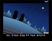 천사들을 만나 아기 예수를 찾는 목자들의 이야기을 담고 있습니다. 뒤로 가기, 멈춤, 재생, 앞으로 가기의 4개의 버튼을 사용해 각 장면을 제어할 수 있습니다.