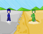 집을 지으려는 두사람이 지혜로운 노인을 찾아갔습니다. 지혜로운 노인은 반석 위에 집짓기를 알려 주었으나, 한 사람은 반석 위에, 한 사람은 모래 위에 지었습니다.