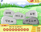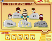바위 뒤에 숨어있는 5명의 제자들이 얼굴을 보여줍니다. 얼굴이 보인 순서나 횟수를 기억하여, 다음에 나오는 문제에 답을 맞추는 게임입니다.