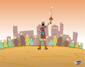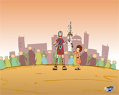 갈라디아서 5장 25절에서 26절 말씀을 배경으로 진행되어집니다. 투구와 방패, 갑옷, 검으로 무장한 믿음의 병사와 건장한 병사가 서로 힘을 겨루고 있습니다.좋은 검을 차지하기 위한 두 병사의 승리의 노력이 펼쳐집니다.