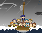 "너희는 배를 타고 호수 건너편으로 먼저 가 있거라." "예, 그런데 예수님은요?" "난 기도하고 따라가겠다." 예수님은 제자들을 보내고, 홀로 기도하시기 위해 산으로 올라가셨어요. 배가 이미 육지에서 멀리 떨어져 있을 때였어요. 제자들은 큰 파도와 거친 바람으로 어려움을 겪게 되었어요. 새벽 3시에서 6시 사이에 예수님께서 물 위를 걸어서 제자들에게 오셨어요. 제자들은 예수님께서 물 위를 걸어 오시는 것을 보고 겁에 질렸어요. 예수님께서는 제자들을 안심시키셨어요. "주여, 정말 주님이시라면 저에게 물위로 걸어오라고 하소서." "오너라." 베드로는 배에서 내려 물 위를 걸어 주님께 향했어요. 그런데 거센 바람을 보자 겁에 질려서 물에 빠졌어요. "믿음이 적은 사람아. 왜 의심하느냐?" 예수님은 즉시 손을 내밀어 베드로를 잡으셨어요. 베드로와 예수님이 배에 오르자 바람이 잠잠해졌어요.