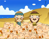 예수님과 제자들은 갈릴리 건너편 거리사 사람들의 마을에 닿았어요. 예수님께서 배에서 내리시니 그 마을에서는 귀신들린 사람이 다가왔어요. "가장 높으신 하나님의 아들이신 예수님, 당신이 저와 무슨 상관이 있습니까? 제발 저를 괴롭히지 마십시오." 이는 예수님께서 더러운 영에게 그 사람에게서 떠나라고 명령하셨기 때문이예요. "니 이름이 무엇이냐?" "군대입니다. 예수님, 저희를 지옥으로 쫓아내지 마십시오." 그 때, 언덕에서 많은 돼지떼가 풀을 먹고 있었어요. "예수님, 저기 저 돼지떼에게 들어가게 해 주십시오." "그렇게 하거라." 그러자 귀신들은 그 사람에게서 나와 돼지떼에게 들어갔고, 그 돼지들은 호수에 빠져 죽었어요. 이 일을 본 사람들이 마을 사람에게 전했는데, 그들은 무서움에 사로잡혀 예수님께서 떠나줄 것을 간청했어요. 그래서 예수님은 배를 타고 돌아가셨어요. 귀신 들려서 고통받다가 예수님에게 고침받은 사람이 예수님을 따르길 원했지만 예수님께서는 "집으로 돌아가서 하나님이 너에게 하신 일에 대해 사람들에게 말하거라." 라고 말씀하셨어요. 그는 모든 마을을 다니며 예수님께서 얼마나 큰 일을 행하셨는지 알렸답니다.