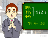 목사님(전도사님) : 어 얘들아 뭐하니? 어~ 단비 너 왜 눈이 부었어? 아톰 : 단비가 성경 동화 보다가 어제 울었대요. 스데반 집사님이 예수님을 전하다가 사람들한테 돌에 맞아서 죽었대요. 목사님(전도사님) : 어~ 그랬구나. 단비 : 목사님(전도사님) 어떻게 스데반 집사님은 돌에 맞으면서도 천사와 같은 얼굴을 하고 죽은 거죠? 목사님(전도사님) : 그건 말이야 스데반 집사님의 힘으로 그렇게 된 것이 아니라 성령님이 함께 하셨기 때문이지 단비, 아톰 : 성령님이요? 목사님(전도사님) : 그렇지 성령님이란다. 단비 : 성령은 어떤 분이세요? 목사님(전도사님) : 성령님은 하나님의 영이란다. 하나님과 예수님과 마찬가지로 동등한 분으로서 지성과 의지와 감정을 모두 갖고 계신 분이란다. 우리가 죄를 회개하고 하나님을 믿는 모든 사람에게 주시는 하나님의 선물이란다. 단비 : 성령이 하시는 일은 뭐예요? 목사님(전도사님) : 성령은 우리가 죄를 깨닫고 회개하도록 인도해 주신단다. 우리가 예수님을 구주로 영접하는 것은 성령께서 도와주시기 때문이란다. 내가 내입으로 시인하는 것 같지만 사실은 성령님께서 고백하게 해 주시는 것이란다. 성령님은 우리에게 세상이 줄 수 없는 참 평화를 주신단다. 그리고 우리의 마음을 새롭게 변화시켜 새로운 삶을 살아가게 힘주시는 분이 성령님이셔~ --------------------------------------- <이하생략>