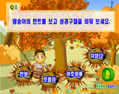 [게임소개] "꿀밤따기"는 다윗이 떨어뜨린 밤송이 속의 적혀진 성경 속 단어들을 조합하여 성경구절을 맞히는 게임입니다. 총 12단계로 구성되어있으며, 단계가 올라갈 수록 문제의 난이도도 올라갑니다. [게임방법] 게임 첫 화면에 <start>를 클릭하면 게임이 시작됩니다. 우측 하단에 숫자가 바로 레벨을 나타냅니다. 숫자를 클릭하면 해당 레벨의 문제가 등장합니다. 레벨간 이동이 자유롭습니다. 숫자 위에 <한번 더>버튼과 <정답보기>버튼을 이용하여 게임 진행을 다채롭게 해보세요^^