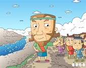 여호수아가 이스라엘 백성들을 이끌고 가나안을 향해 가던 중 요단강 앞에 멈춰 섰어요. 3일 뒤, 여호수아의 지시를 받은 지휘관들이 이스라엘 백성들에게 명령했어요. "제사장들은 언약궤를 메고 앞장 서가고, 백성들은 그 뒤를 따르시오." 여호수아는 이스라엘 백성들에게 하나님이 가르쳐 주신 말씀을 전했어요. "이제부터 여러분들이 하는 일은 몸과 마음을 깨끗하게 하는 일이오! 하나님께서 내일 놀라운 일을 행하실 것이오." 여호수아는 이스라엘 백성들에게 요단강을 건너는 방법을 알려 주었어요. "언약궤를 맨 제사장들이 먼저 요단강을 건너시오. 백성들은 뒤를 따를 것이오." 이스라엘 백성들이 요단강을 건너던 때는 둑까지 물이 가득 차 있어 매우 위험했어요. "아니 저렇게 강물이 세차게 흐르는데 어떻게 건너나..." "하나님! 말씀에 순종하며 믿음으로 강을 건넙니다. 도와주세요." 언약궤를 멘 제사장들이 요단강에 발을 들여 놓자, 놀라운 일이 일어났어요. "아니, 그렇게 세차게 흐르던 강물이 멈추었어! 이럴수가!" 제사장들은 모든 백성들이 강을 건널 때까지 강 가운데 서 있었어요. "마른 땅으로 강을 건너다니!! 이런일이!" "하나님이 기적을 베풀어주셨어." 믿음으로 요단강을 건넌 여호수아와 이스라엘 백성들은 하나님을 찬양했어요. "온 세상을 만드신 우리 하나님, 감사합니다."