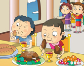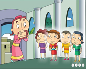 바벨론이 이스라엘과 전쟁하여 이기자 포로들을 끌고 왔어요. 그 중에는 다니엘과 세 친구가 있었어요. ‘여봐라! 포로들 중에 잘 생기고 똑똑한 소년들을 훈련시켜 나의 시중을 들게 하라.’ 훈련을 시작할 때 다니엘과 세 친구는 왕이 내린 음식을 먹지 않겠다고 신하에게 말했어요. ‘임금님 명령이다! 너희들은 임금님께서 내려주신 고기와 포도주를 먹도록 하여라!’ ‘우리는 왕이 내린 음식과 포도주를 먹으며 몸을 더럽히지 않겠습니다.’ 신하들은 음식을 거부하는 다니엘을 보고 벌벌 떨었어요. ‘너희들이 음식을 안 먹으면 나는 죽은 목숨이야. 제발 날 좀 살려줘!’ ‘우리들에게 채소와 물을 주십시오. 10일이 지난 다음 우리의 얼굴을 비교해 보세요.’ 다니엘과 세 친구는 하나님께 특별히 기도하기로 결심하고 채소와 물만 먹기로 했어요. ‘너희들 진짜 임금님이 주신 고기와 포도주를 안 먹을 거니?’ ‘네, 채소와 물만 먹을 거예요.’ ‘두고 보세요, 하나님께서 우리 얼굴에 광채가 나게 하실 거예요.’ 왕의 신하는 다니엘과 세 친구들의 말을 듣고 열흘 동안 채소를 주어 먹게 했어요. ‘그래, 너희들이 원하는 채소종류로 음식을 준비했으니 많이 먹어라!’ ‘감사합니다. 감독관님!’ 열흘이 지난 후에 감독관은 다니엘과 세 친구들의 얼굴을 보고 깜짝 놀랐어요. ‘와~ 어떻게 채소만 먹고 이렇게 살이 찔 수 있지? 얼굴에 광채가 나는구나!’ ‘하나님이 은혜를 주셨기 때문입니다.’ ‘맞습니다. 하나님이 이렇게 만들어 주셨어요.’ 하나님이 믿음으로 기도했던 다니엘과 세 친구들에게 특별한 지식과 은혜를 주셨어요. 하나님은 다니엘에게는 특별히 환상과 꿈을 해석하는 능력도 주셨어요. 느부갓네살 왕은 다니엘과 세 친구들이 그 어떤 사람들 보다 똑똑하다는 것을 알았어요. ‘너희들은 그 어떤 사람들 보다 똑똑하구나. 나의 곁에서 나를 도와라!’ ‘네, 임금님! 명령에 따르겠습니다.’