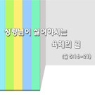 우리가 이 땅에서 육체를 입고 있는 이상 늘 육체의 욕심과 성령의 명령이 갈등을 일으킬 수 밖에 없습니다. 그러나 우리는 성경 말씀과 성령님을 의지하는 가운데 영적인 싸움을 싸워 이겨야 됩니다. 이 자료는 사용자의 편의에 맞게 수정과 편집이 가능하므로 내용 및 순서편집을 직접 하실 수 있습니다. 전 내용은 100% 수정이 가능하므로 교회의 실정에 맞게 변경하여 사용하실 수 있습니다.